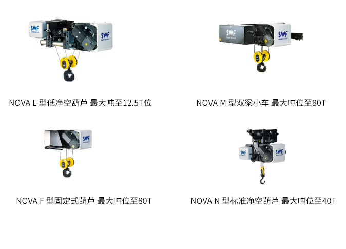 NOVA silverline 能提供不同型號的葫蘆 噸位至80t 。 根據(jù)客戶需求配置的智能監(jiān)控特性和葫蘆監(jiān)控能優(yōu)化工作流程。